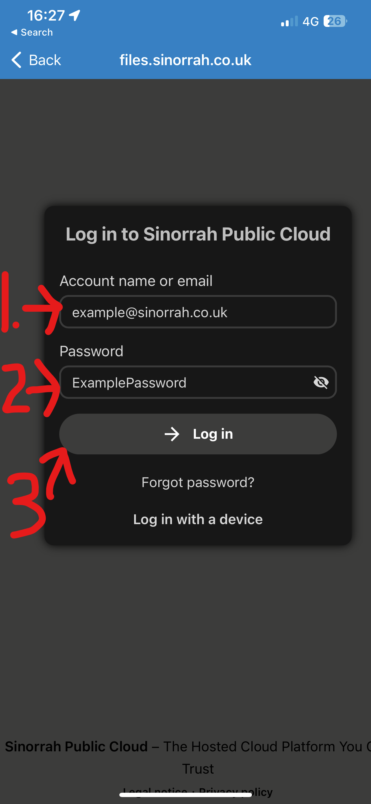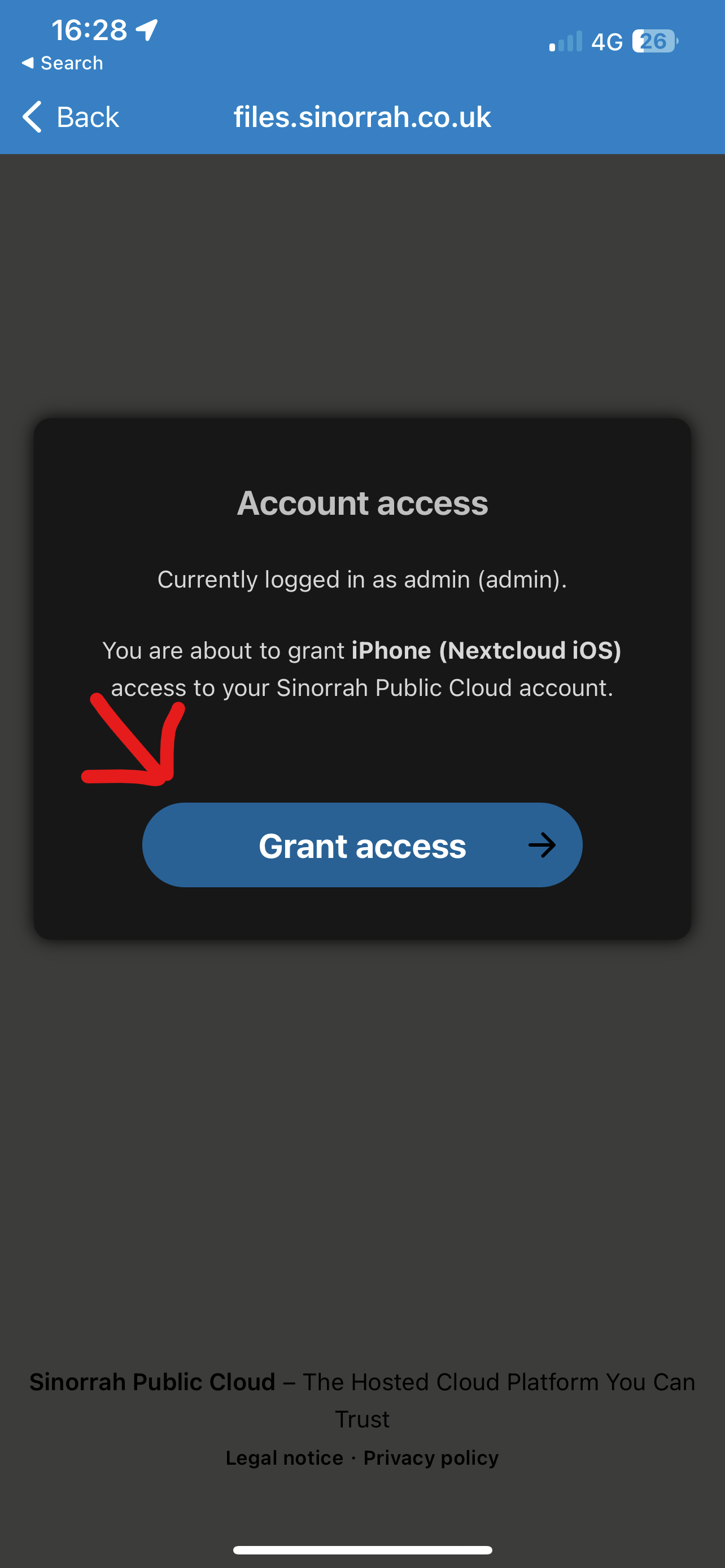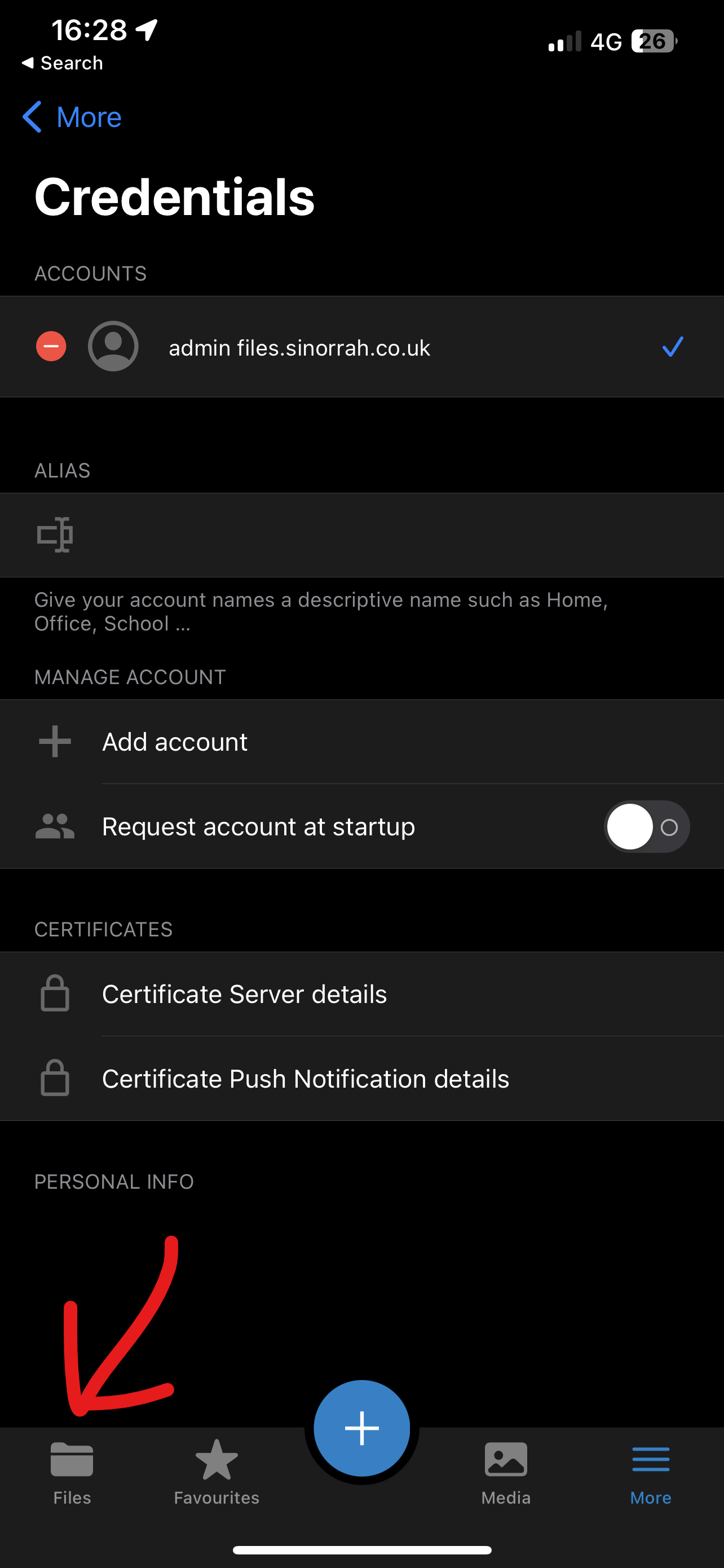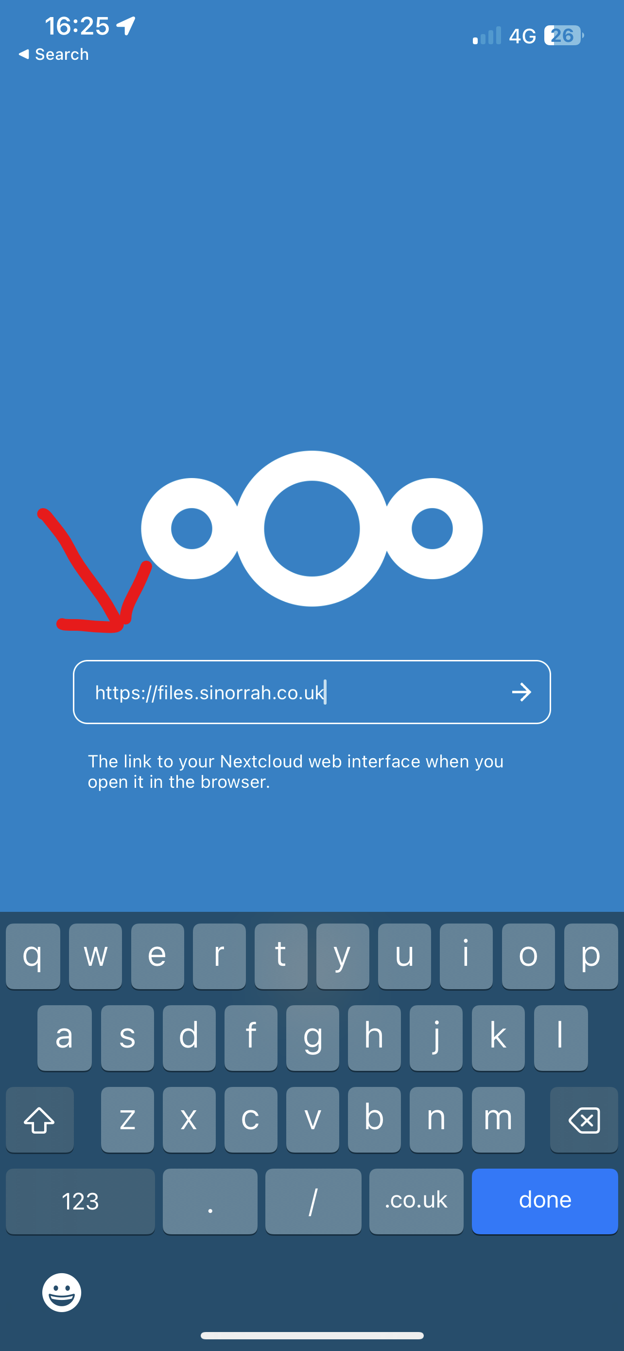 - Enter in the "Server Address" box "https://files.sinorrah.co.uk"
