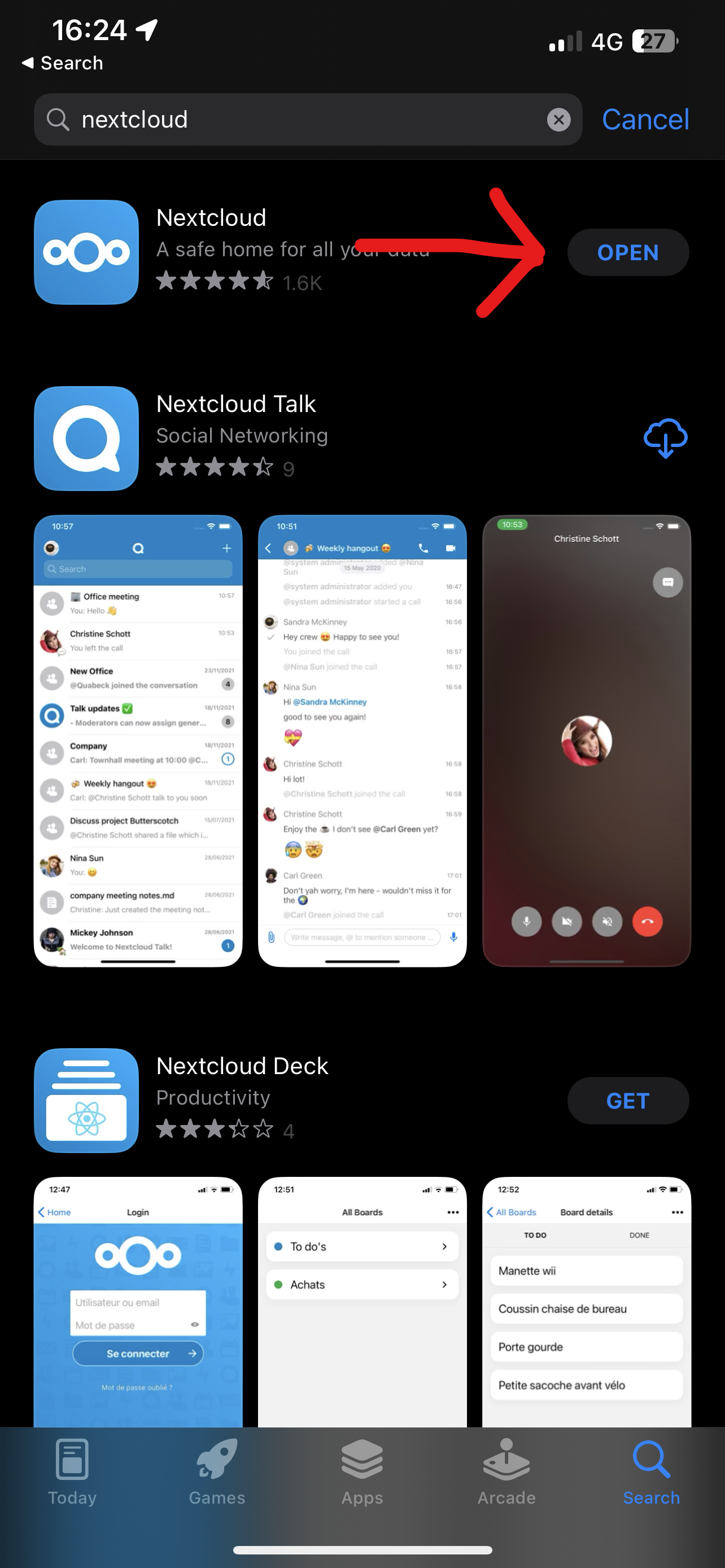 - Open the App store and search "Nextcloud"