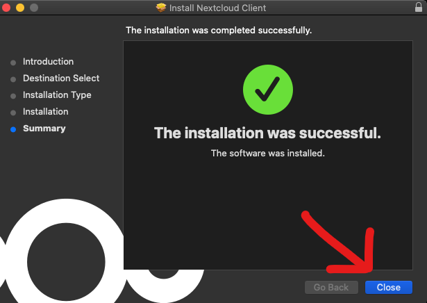 If the Nextcloud install is successful, you should see Nextcloud pop up and start to sync your files.