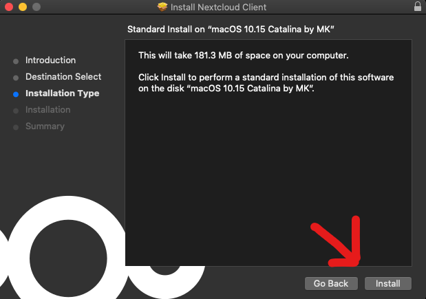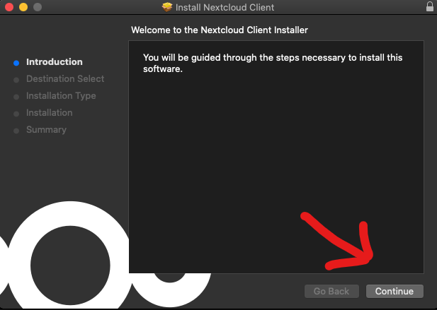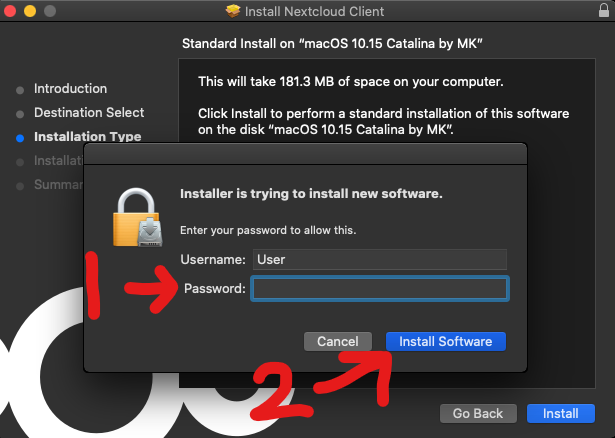 A popup should appear asking for permission to install Nextcloud, please enter your device's password and click "Install Software"
