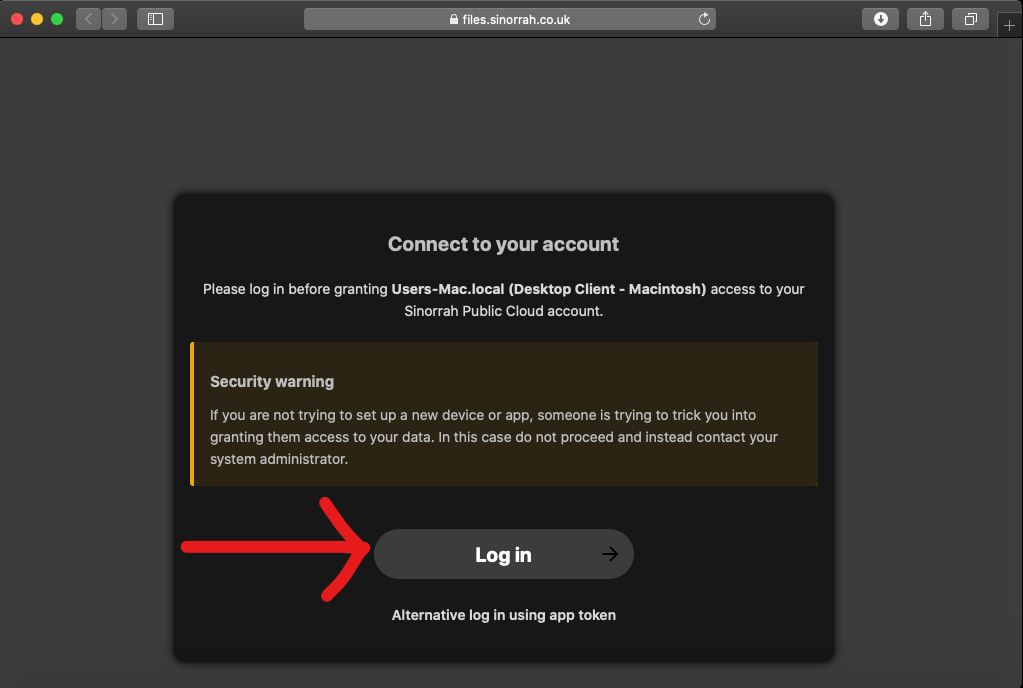 A web browser should open asking you to "Connect to your account", click "Log in"