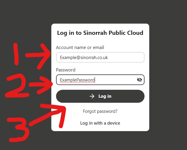 - You should now be greeted with a login page, please put your email in the "Account name or Email" box, then put your password in the "Password" box, then click "Log in"