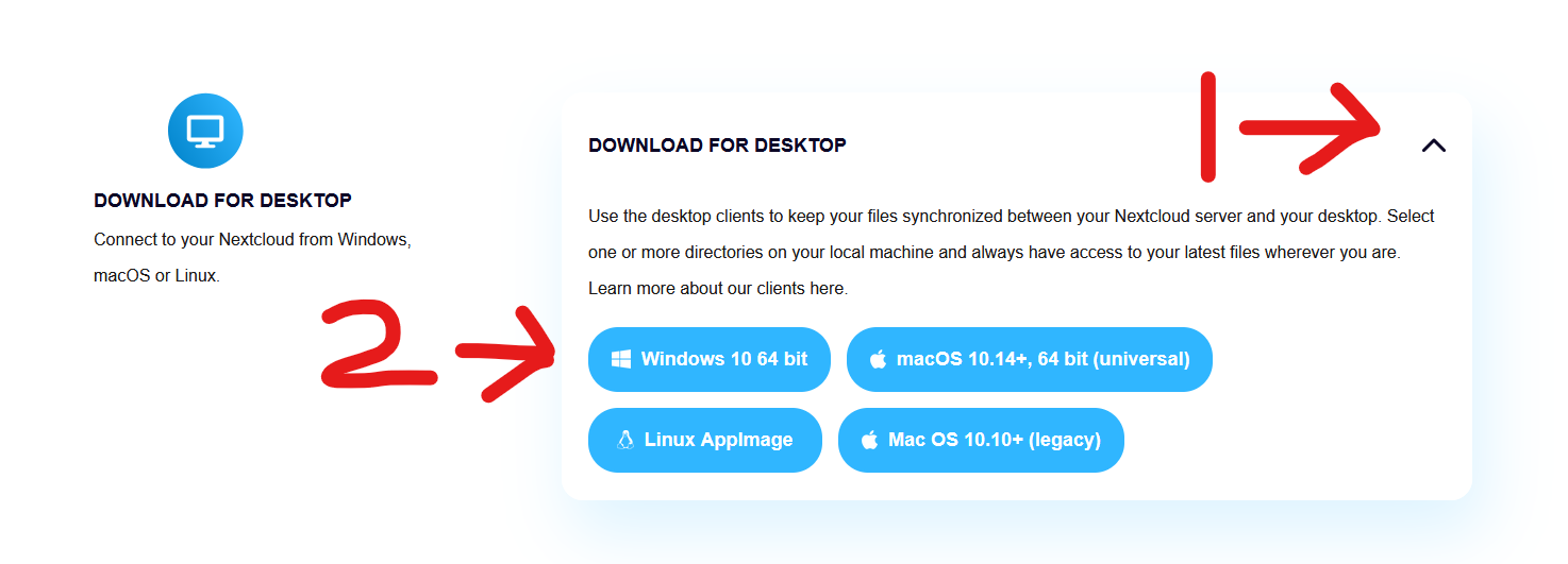 - Along the top of the page go to "Get Nextcloud", then click "Desktop & Mobile Apps"