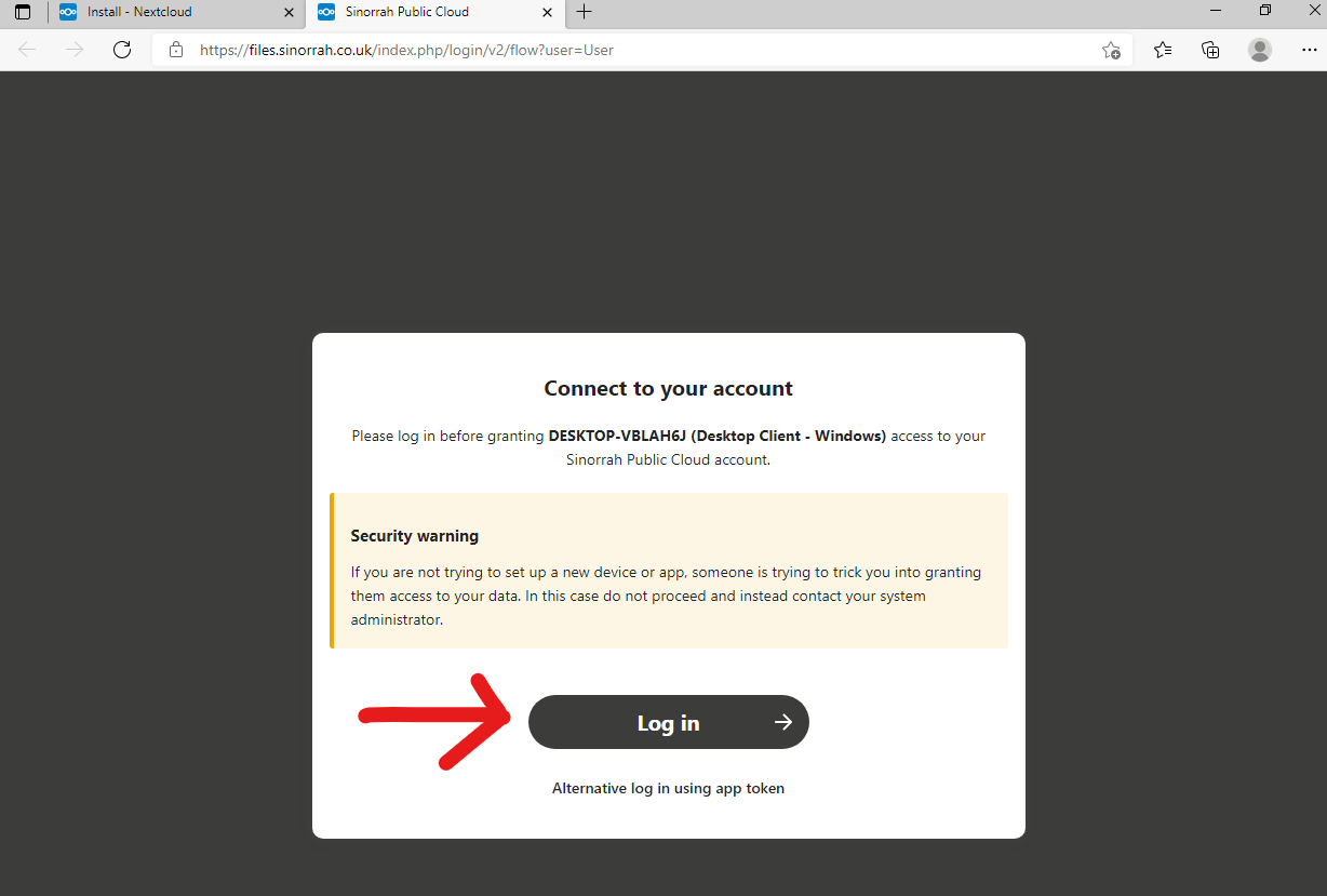 - If logged in correctly, you should see this screen and nextcloud pop back up