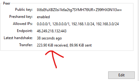 A. Look at the transfer, if these numbers are both going up, the VPN is live