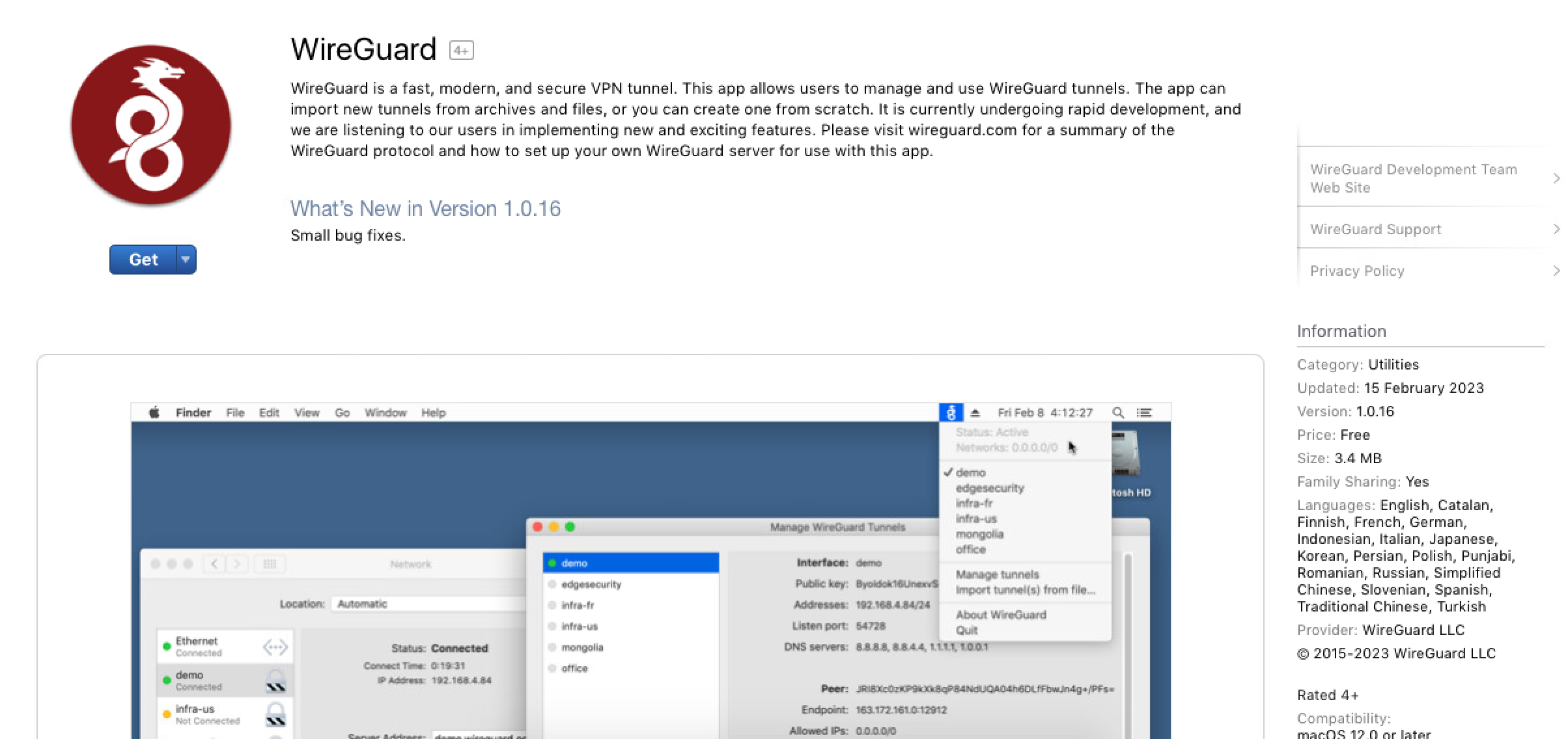 - Go to https://itunes.apple.com/us/app/wireguard/id1451685025?ls=1&mt=12 or the App Store and download "Wireguard" and choose "Get" then "Install App"